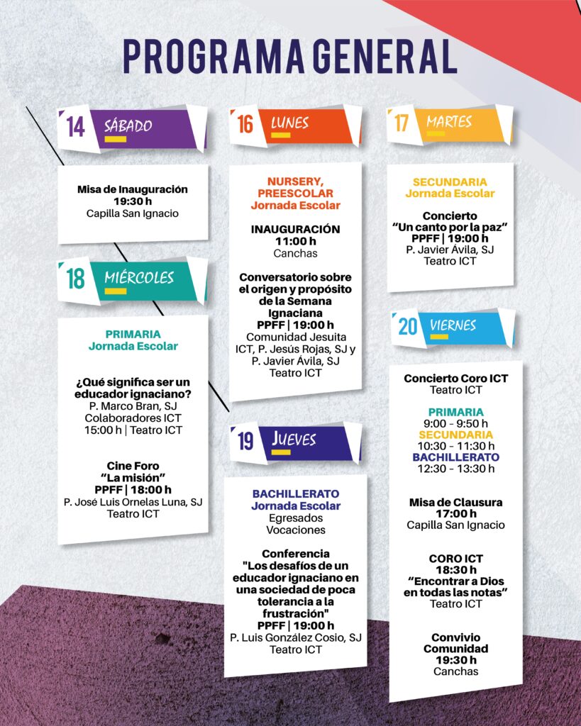 La Semana Ignaciana, como obra educativa de la Compañía de Jesús, nos permite hacer un alto en el camino, nos ofrece la oportunidad de crear espacios de oración, reflexión, y hacer vida el sueño de Ignacio y primeros compañeros, y de todos los que deseamos colaborar en la construcción de un mundo mejor desde la espiritualidad ignaciana.